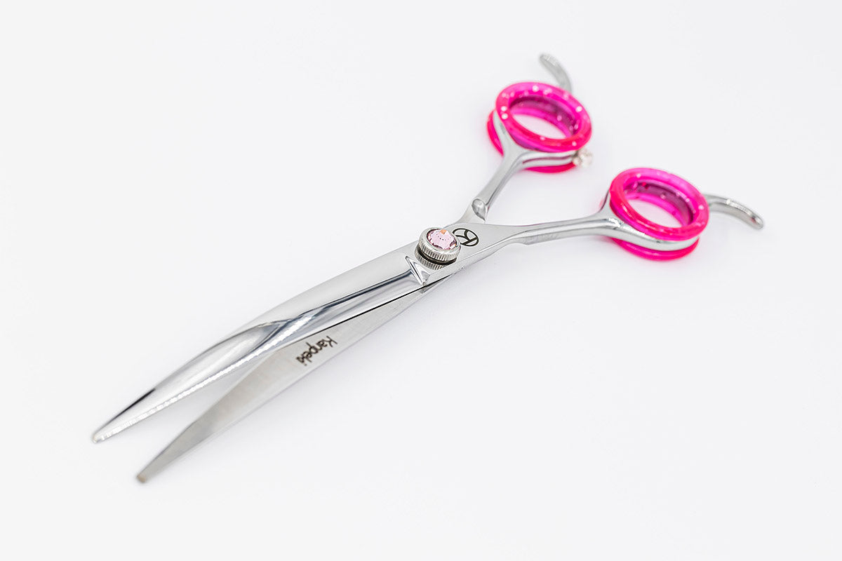 A finest quality dog grooming curved scissor manufactured from tough pure Japanese Stainless Steel giving maximum blade life for a consistent professional finish.
