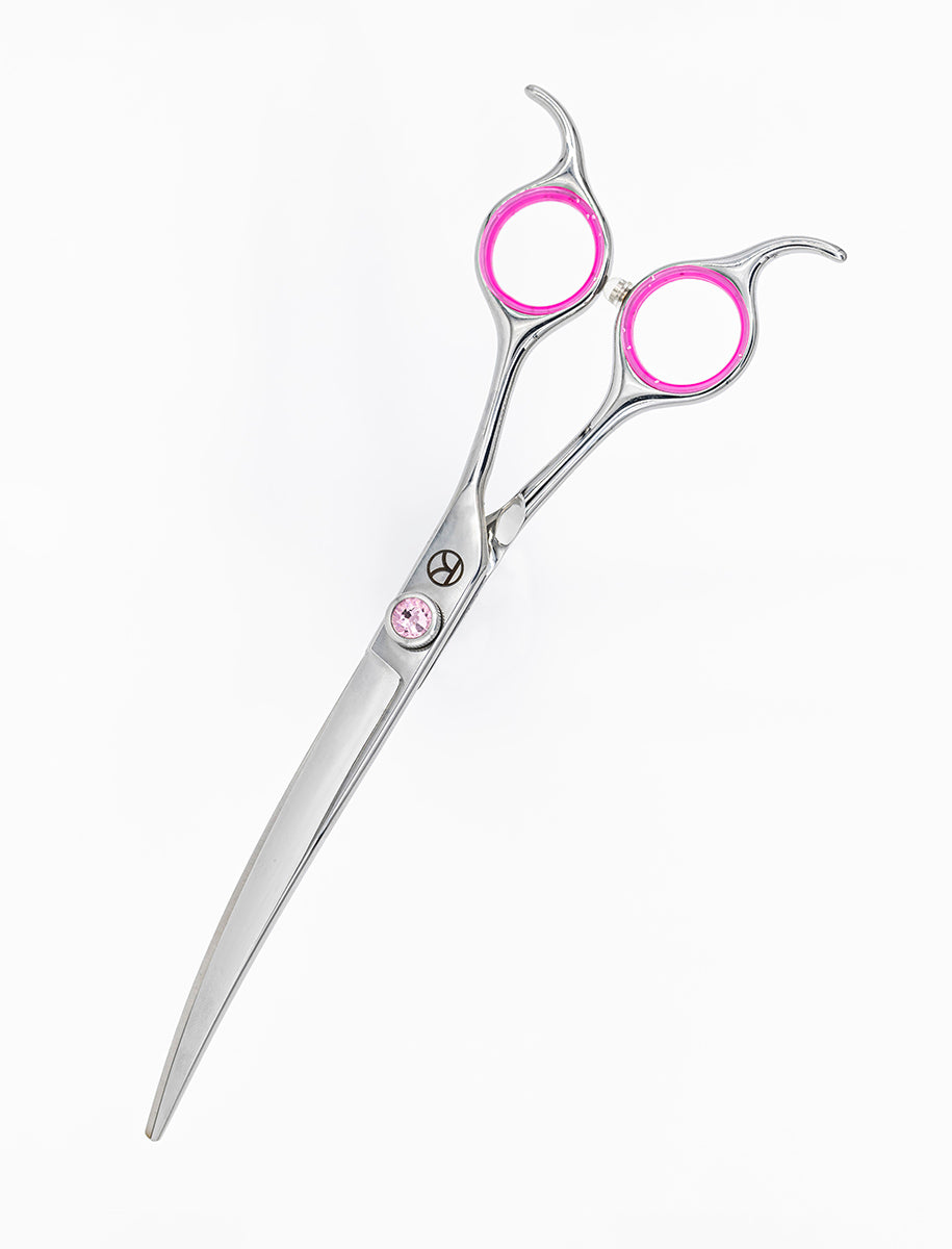 A finest quality dog grooming curved scissor manufactured from tough pure Japanese Stainless Steel giving maximum blade life for a consistent professional finish.